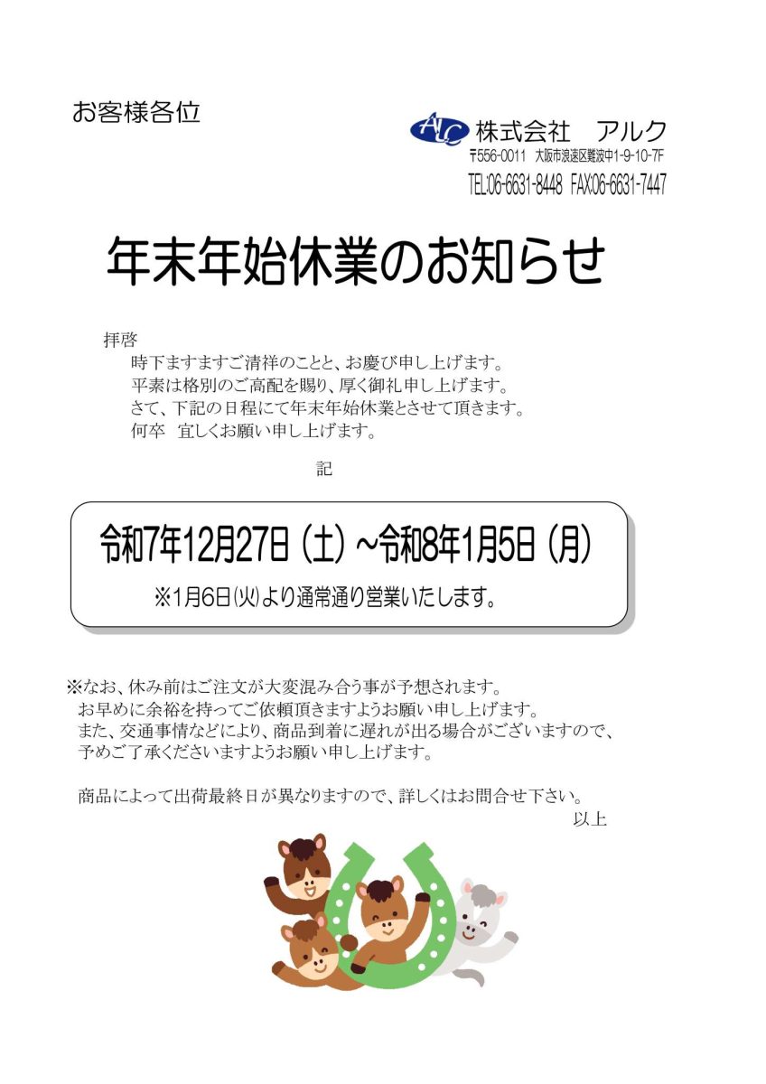 年末年始休業のお知らせ